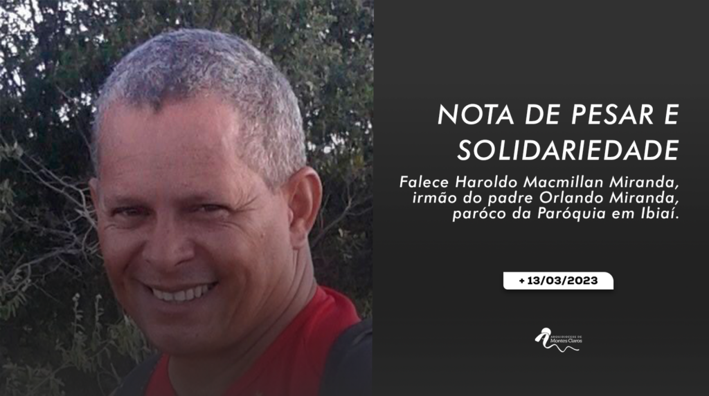 Comunicamos com pesar o falecimento de Haroldo Macmillan Miranda, irmão do padre Orlando Miranda Filho, pároco da Paróquia Imaculada Conceição em Ibiaí. Haroldo tratava de um câncer e faleceu no início da tarde desta segunda-feira, 13 de março. O velório acontecerá na Funerária Carvalho em Janaúba-MG, à partir das 19h de hoje e o sepultamento será […]