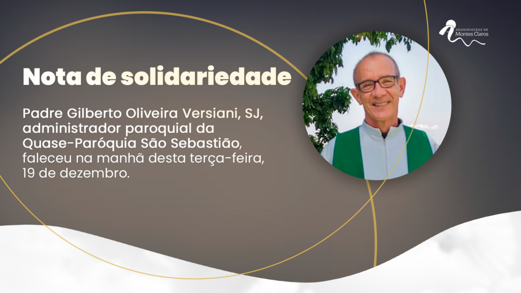 Com profundo pesar, a Arquidiocese de Montes Claros comunica o falecimento do padre Gilberto Oliveira Versiani – SJ, ocorrido na manhã desta terça-feira, 19 de dezembro, no Hospital Santa Casa de Montes Claros. O sacerdote encontrava-se internado desde o dia 28 de setembro de 2023, após um acidente automobilístico no município de Campo Azul-MG, onde […]