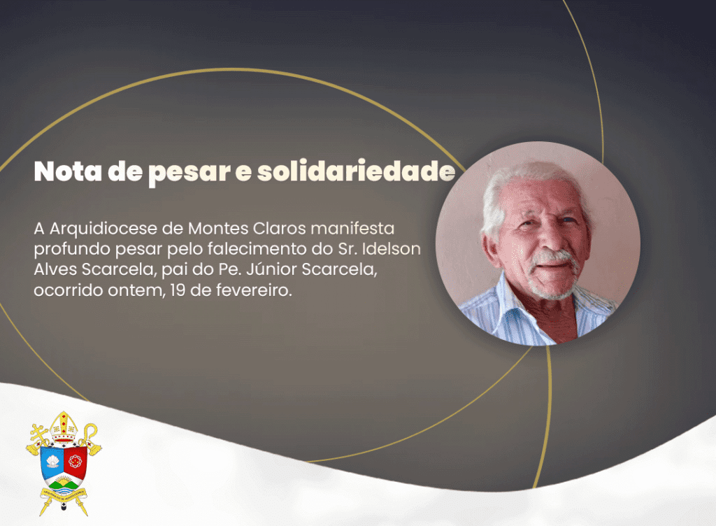 A Arquidiocese de Montes Claros manifesta profundo pesar pelo falecimento do Sr. Idelson Alves Scarcela, pai do Pe. Júnior Scarcela, ocorrido ontem, 19 de fevereiro. Pe. Idelson Alves Scarcella Júnior é sacerdote diocesano incardinado na Arquidiocese de Montes Claros, atualmente em missão no Serviço Militar do Brasil (Exército). O velório está sendo realizado hoje, […]