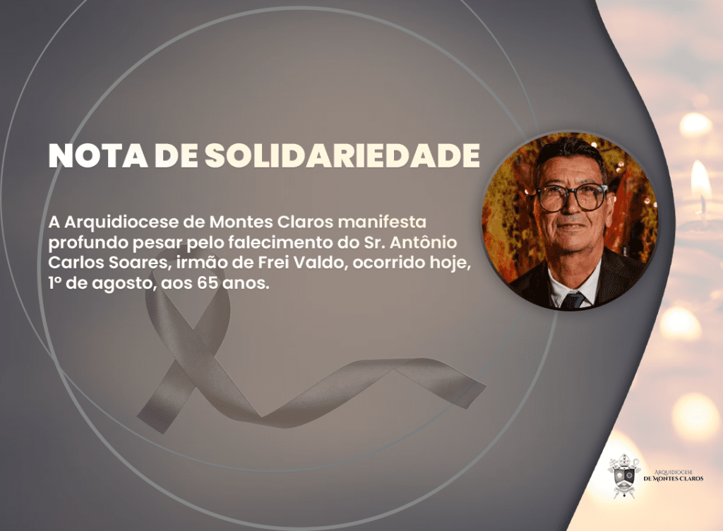 A Arquidiocese de Montes Claros manifesta profundo pesar pelo falecimento do Sr. Antônio Carlos Soares, irmão de Frei Valdo, ocorrido hoje, 1º de agosto, aos 65 anos. O velório terá início às 19h, desta sexta-feira, na Funerária Santa Casa Memorial, localizada na Rua Irmã Beata, 603 – Centro, Montes Claros – MG. O sepultamento será […]