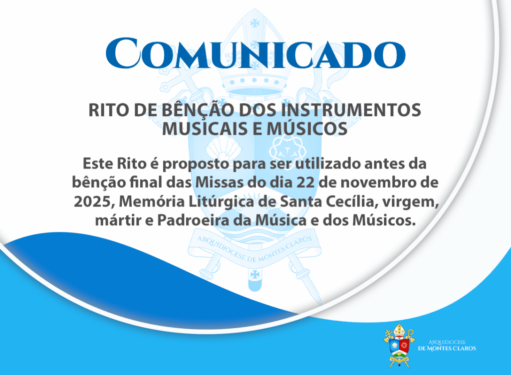A Arquidiocese de Montes Claros, por meio da Comissão de Música Sacra e do Secretariado para a Liturgia, disponibiliza para todas as paróquias e comunidades o Rito de Bênção dos Instrumentos Musicais e dos Músicos, a ser utilizado nas Missas do dia 22 de novembro de 2025, quando a Igreja celebra a Memória Litúrgica de […]