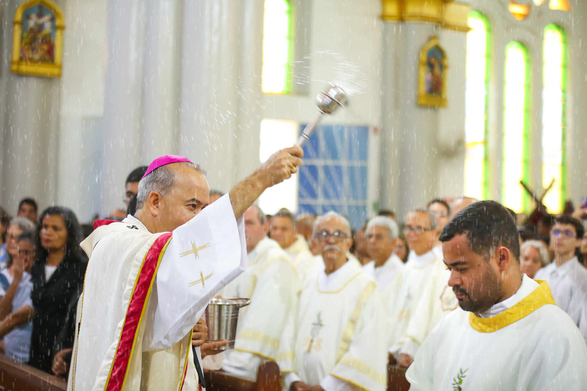 Ao adentrarem a Catedral, o arcebispo aspergiu água sobre os fiéis, rememorando o Batismo, porta de entrada na vida cristã e na Igreja. Esse gesto reforçou o chamado do Jubileu para uma conversão sincera e um novo encontro com Cristo.