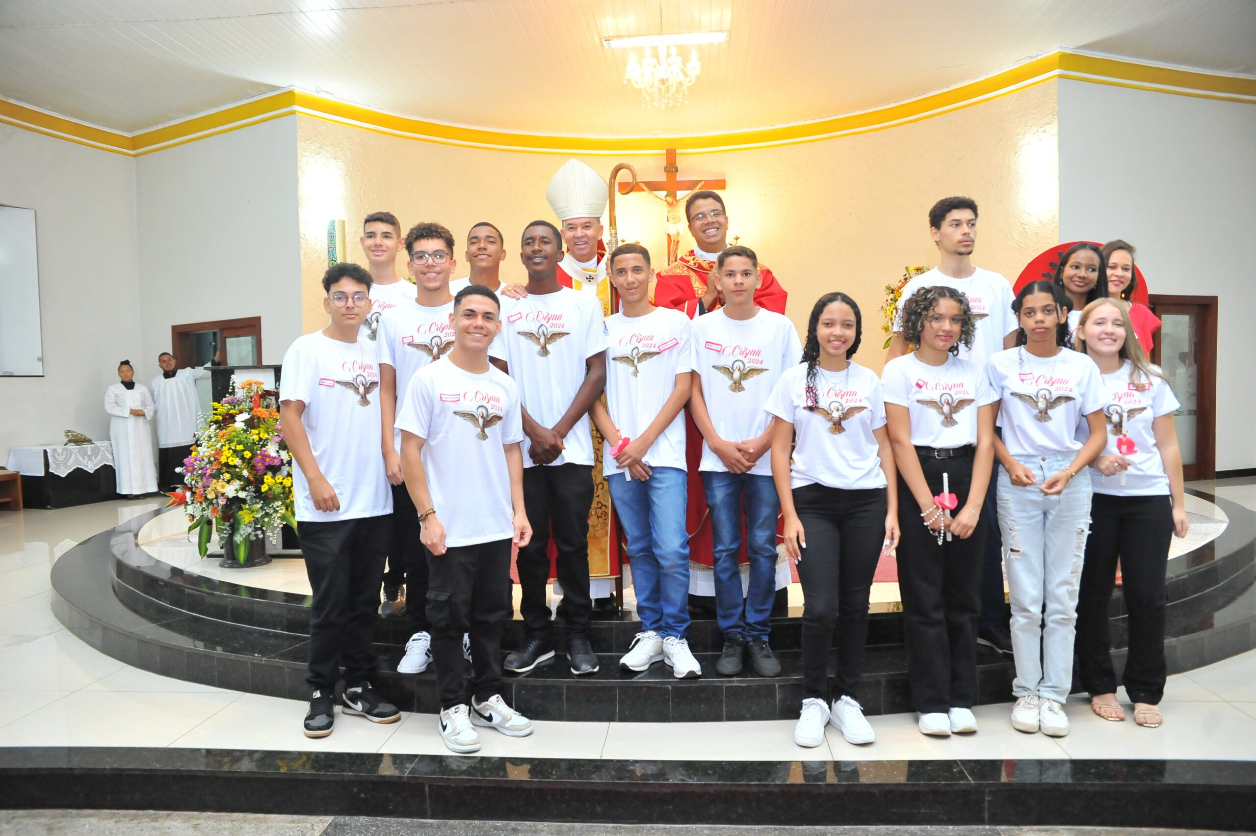 A celebração foi enriquecida por cânticos litúrgicos que envolveram a assembleia, criando um ambiente de louvor e gratidão. A presença de familiares e amigos dos crismandos também contribuiu para a atmosfera de união e alegria que permeou a cerimônia.