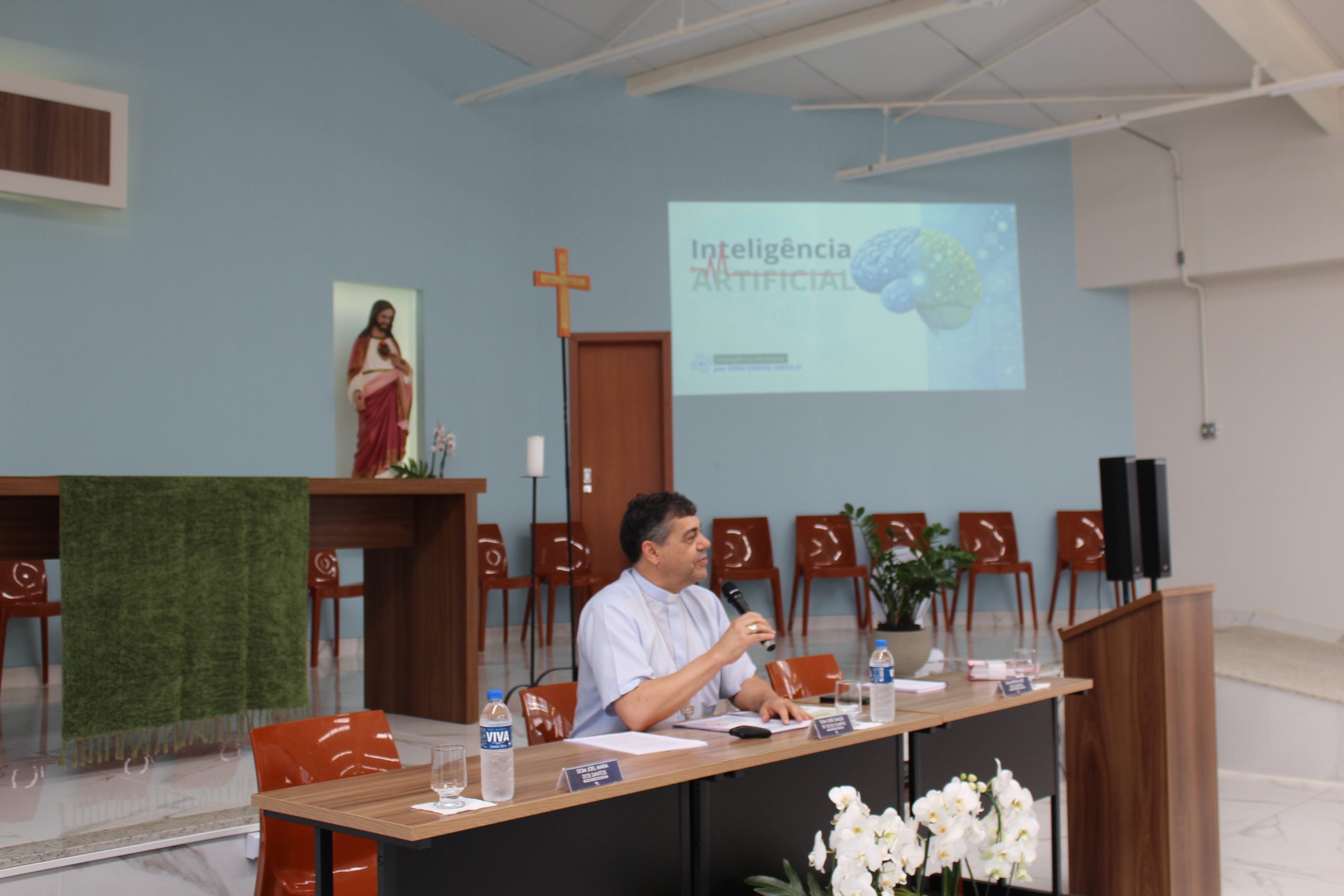 O último dia teve como destaque o tema “Inteligência Artificial”, explorado por Dom Edson José Oriolo. A palestra abordou conceitos como IA generativa e suas aplicações na evangelização, além de fomentar debates sobre os impactos da tecnologia na vida das pessoas.