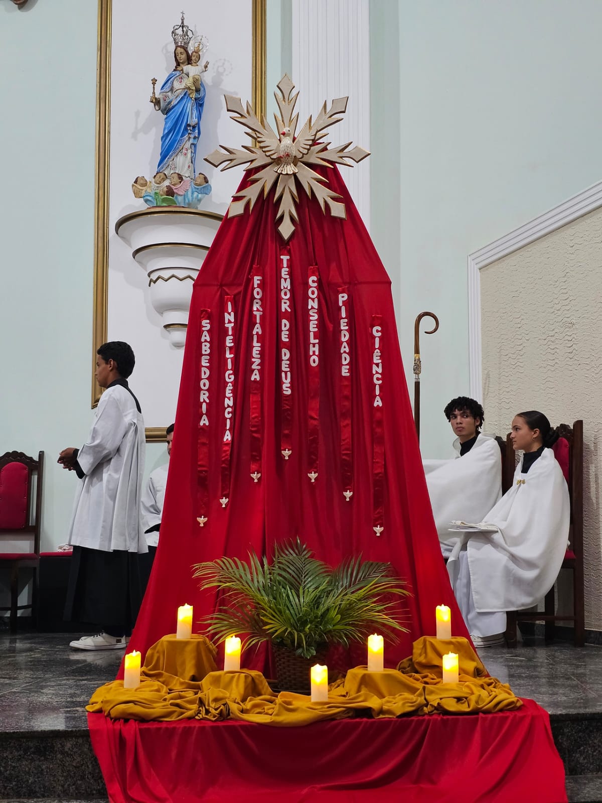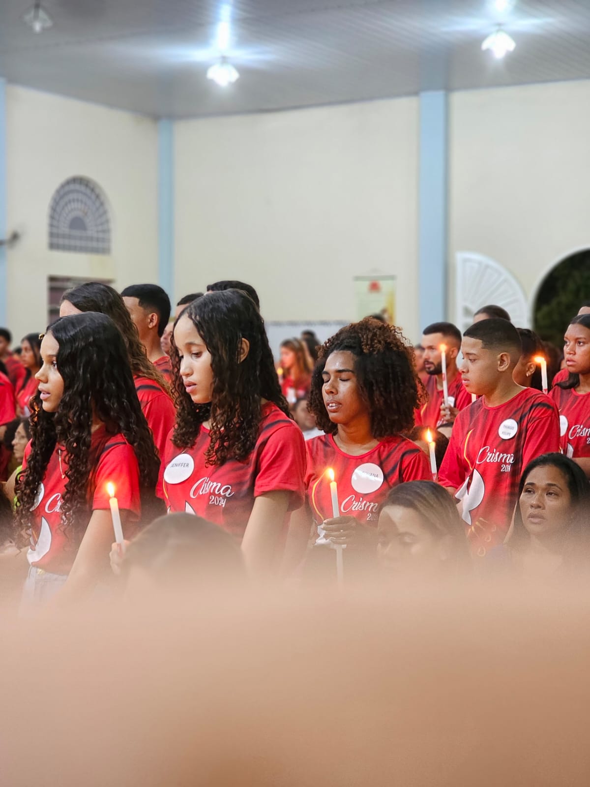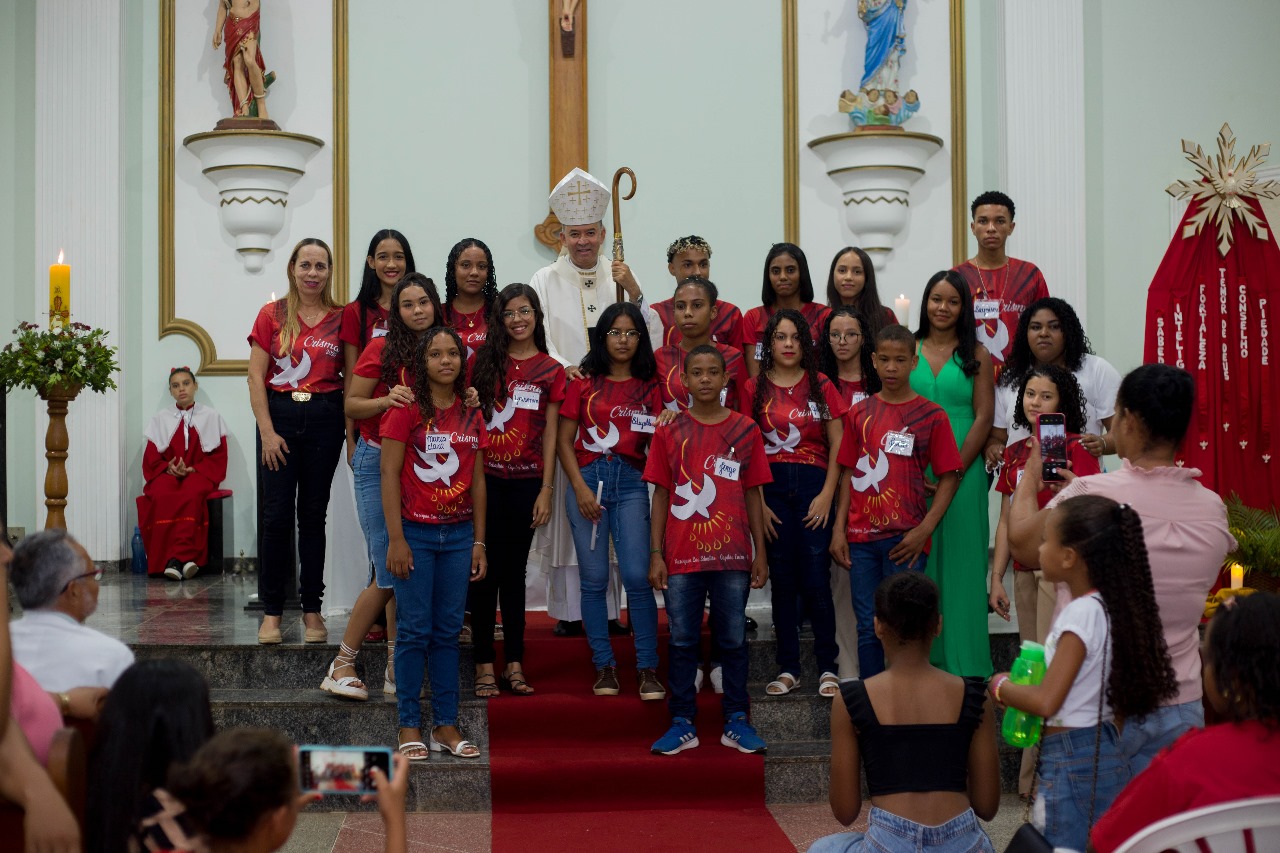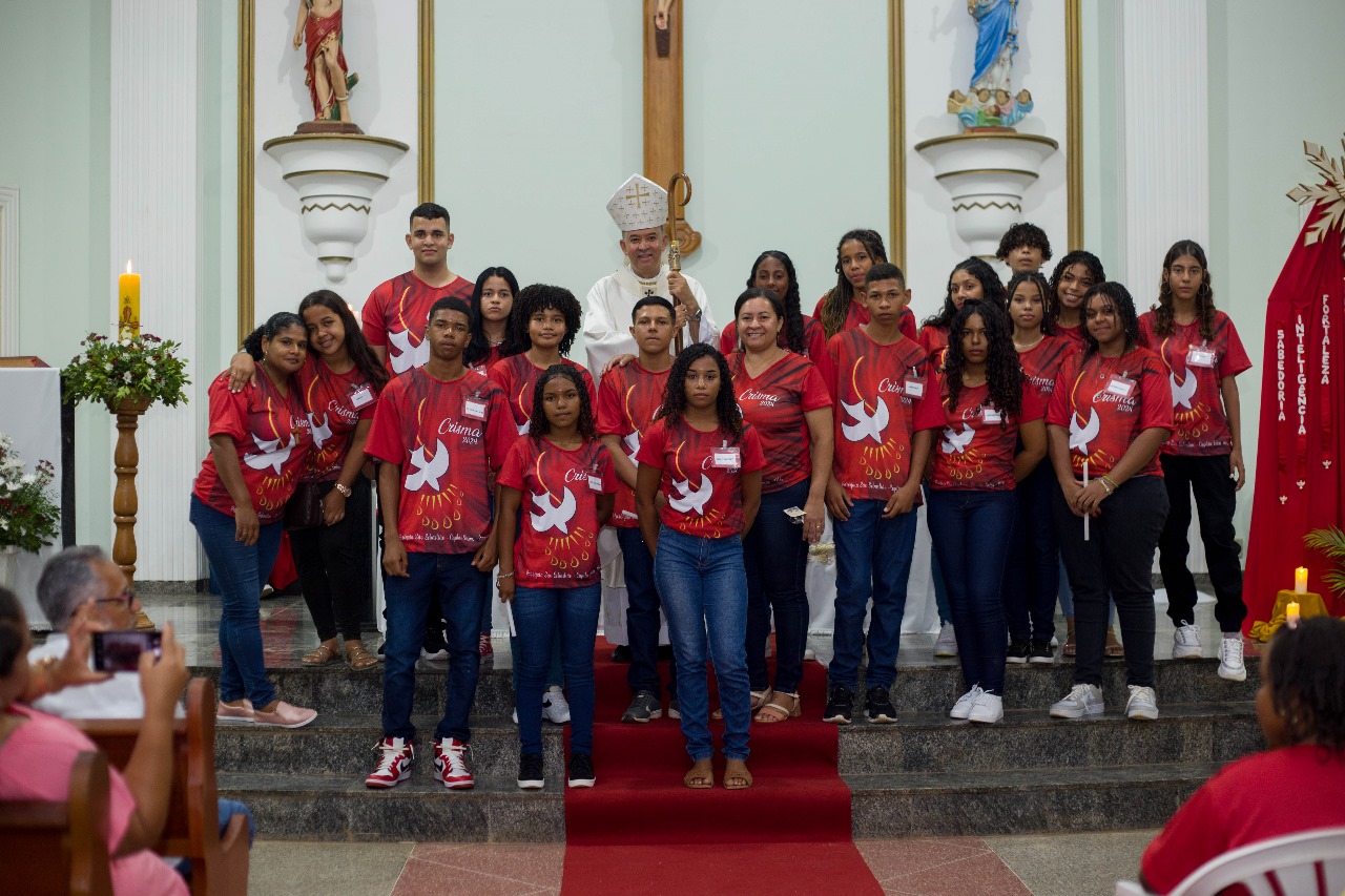 A igreja estava repleta de familiares, amigos e membros da comunidade, todos reunidos para testemunhar e celebrar esse passo significativo na jornada de fé dos jovens. A Crisma, sacramento da confirmação, fortalece os fiéis para viverem sua fé de maneira plena.
