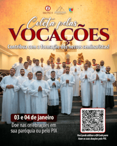 Durante o ofertório das celebrações dos dias 02 e 03 de janeiro, os fiéis poderão realizar sua doação de forma simples e concreta, expressando apoio à missão da Igreja e às vocações que nela florescem. Cada contribuição, independentemente do valor, é de grande importância e ajuda a garantir que os seminaristas tenham condições adequadas para seguir seu caminho vocacional.