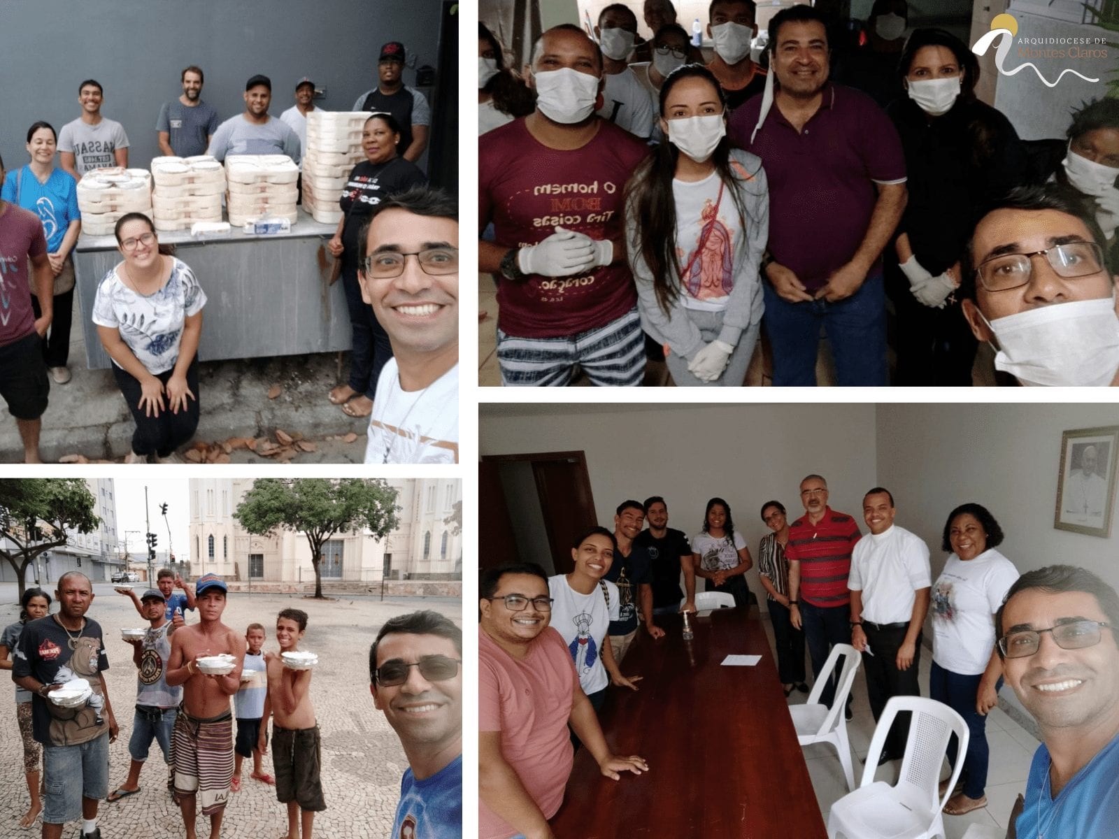 No dia 20 de março um grupo de amigos saiu para doar álcool gel e sabonetes, preocupados com aqueles que não tinham “casa”. Corações onde campanhas como “fiquem em casa” não podem ressoar, ou seja, nossos irmãos em situação de rua. O grupo percebeu a aflição deles em relação à alimentação e higiene pessoal, pois as ruas ficariam desertas e os locais de alimentação fechados. Esta semana, os órgãos públicos ainda não tinham tomado atitudes em relação às pessoas necessitadas. A equipe formada pela casa de acolhimento Rosa Mística, Pastoral do Povo da Rua, Cáritas Arquidiocesana, Pastoral Social e outros voluntários promoveu no dia 21 e 22 de março, a doação de alimentos e auxílios que os irmãos desabrigados sentiam falta. O empresário Peu, da Vila 61, cedeu toda a alimentação, preparando e organizando nos marmitex. O que impulsionava era não deixar que sentissem fome, pois ela não esperava. Com o alimento ficariam mais fortes para enfrentar as situações adversas que afligem a saúde. No domingo, recebendo o marmitex celebravam com alegria por terem um almoço que saciaria, a cidade estava vazia e os voluntários podiam ouvir: “Deus olhou por nós”. Nos dias seguintes, a ação ainda continuou com os devidos cuidados por parte da equipe, sendo sinais vivos para que ninguém se sentisse abandonado. A Catedral de Montes Claros tem feito uma efetiva campanha para arrecadar estes alimentos e tem ajudado neste trabalho, tanto junto as pessoas em situação de rua como os pobres de maneira geral. Você pode fazer sua doação na secretaria!