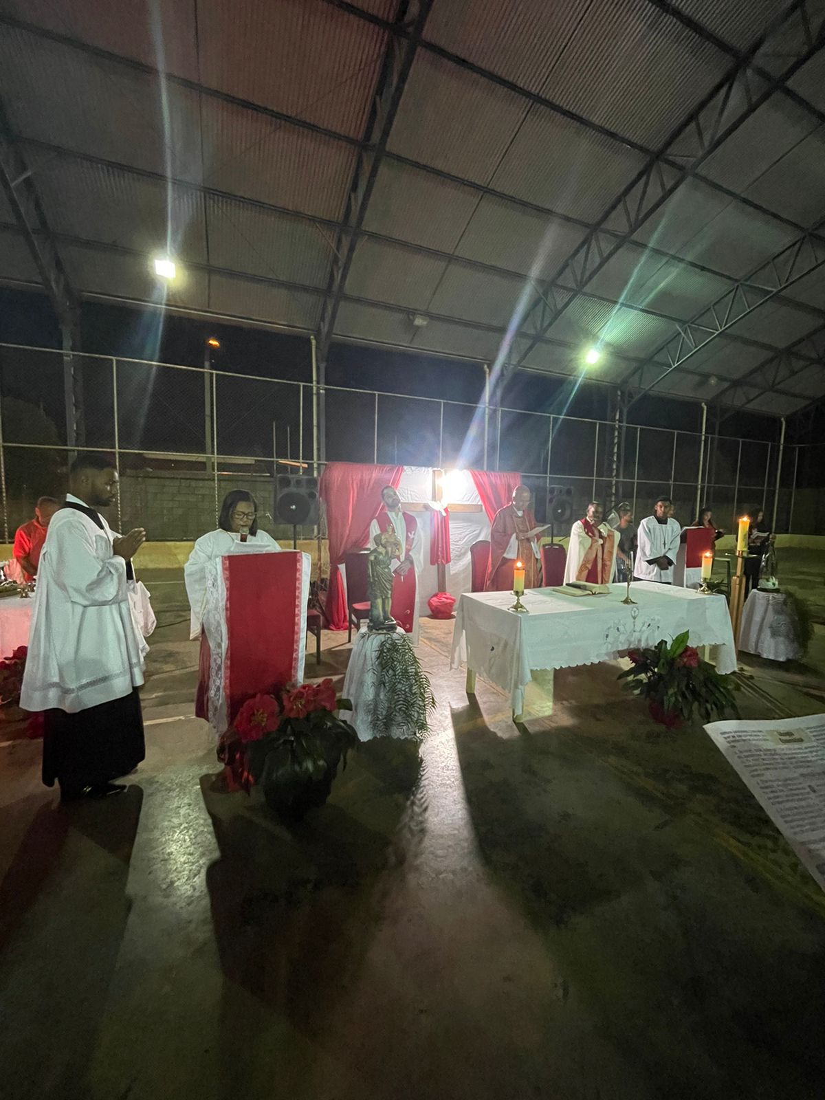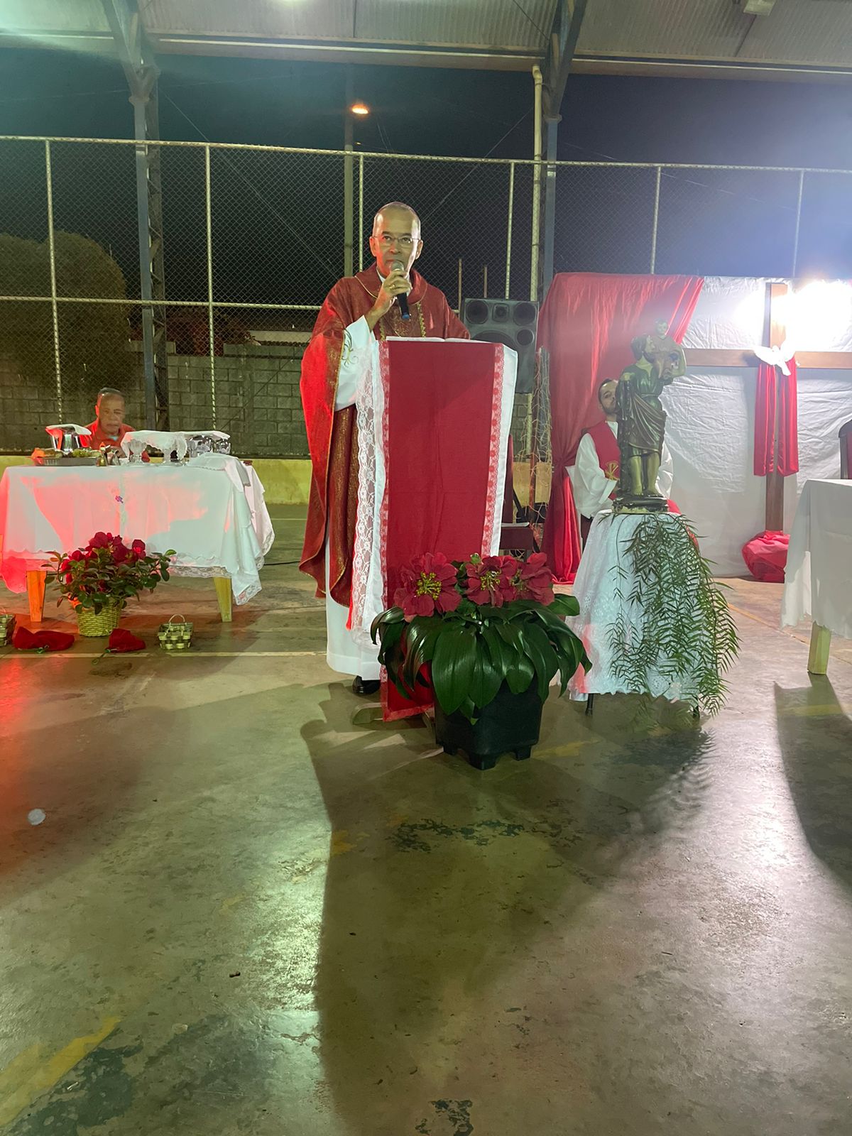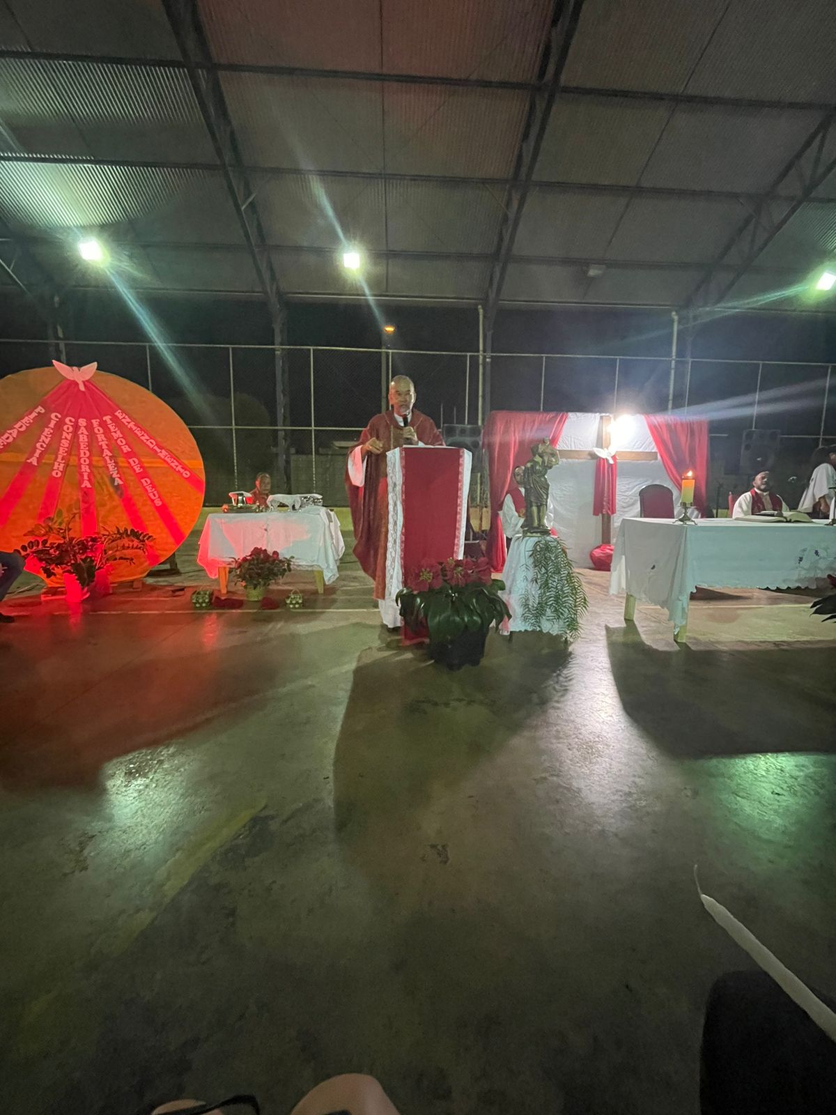 A celebração ocorreu na Quadra Esportiva local e contou com a participação ativa da comunidade. Concelebraram com o arcebispo o pároco, padre Helton de Oliveira Cardoso, e o vigário paroquial, padre Inivaldo Fernandes Lima.