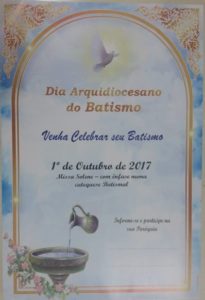 O Dia Arquidiocesano do Batismo foi celebrado pela primeira vez em 1º de outubro de 2017, com o objetivo de valorizar e celebrar a vivência do Batismo Cristão em todas as paróquias e comunidades. Esta proposta foi apresentada pela equipe da Pastoral do Batismo daquele ano, sob a orientação do padre Júnior Pereira e da coordenadora Ildete de Jesus Gusmão.