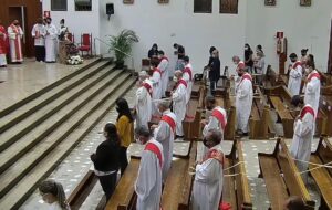 Diáconos permanentes da Arquidiocese de Montes Claros participaram de Missa Solene em honra a São Lourenço, Patrono dos Diáconos, no dia 10 de agosto. Dom João Justino presidiu a celebração Eucarística que foi concelebrada pelos padres Alan Sávio, Cleydson Rafael, André Henrique, Raimundo Carlos e Oliveira Rodrigues, na Igreja Senhor do Bonfim em Bocaiuva.