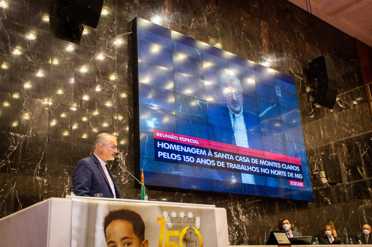 A Assembleia Legislativa de Minas Gerais (ALMG) realizou na última segunda-feira (27/9/21), Reunião Especial de Plenário em homenagem à Santa Casa de Montes Claros pelos 150 anos de trabalhos prestados à população da região. O requerimento da solenidade teve como primeiro signatário o deputado Carlos Pimenta (PDT), no qual ele e os demais parlamentares que solicitaram a homenagem, destacaram o papel da entidade no cenário da pandemia de Covid-19, atendendo a centenas de pacientes internados nas enfermarias e nos centros de tratamento intensivo (CTIs). A permanente atuação na área de transplantes também foi ressaltada.