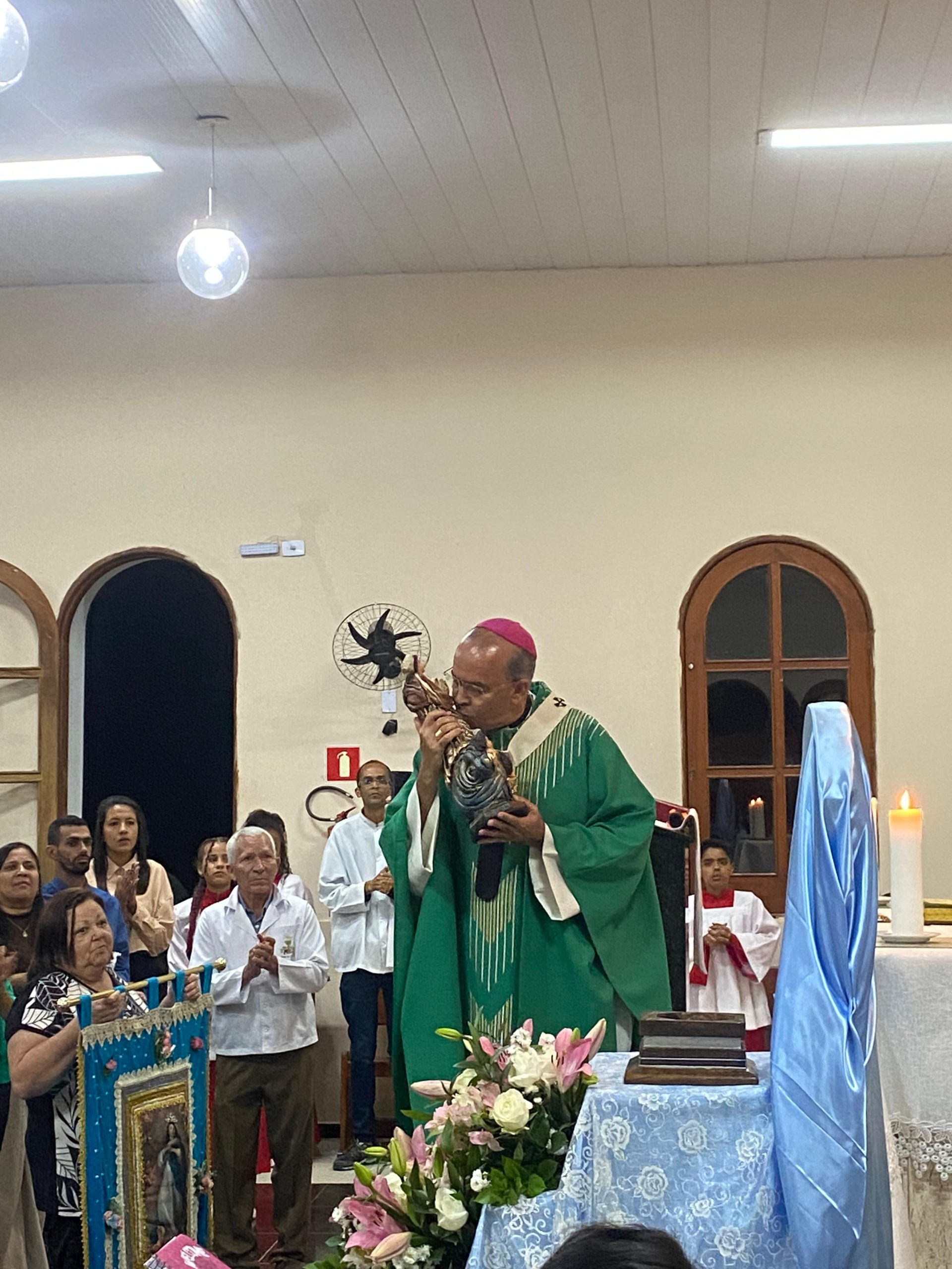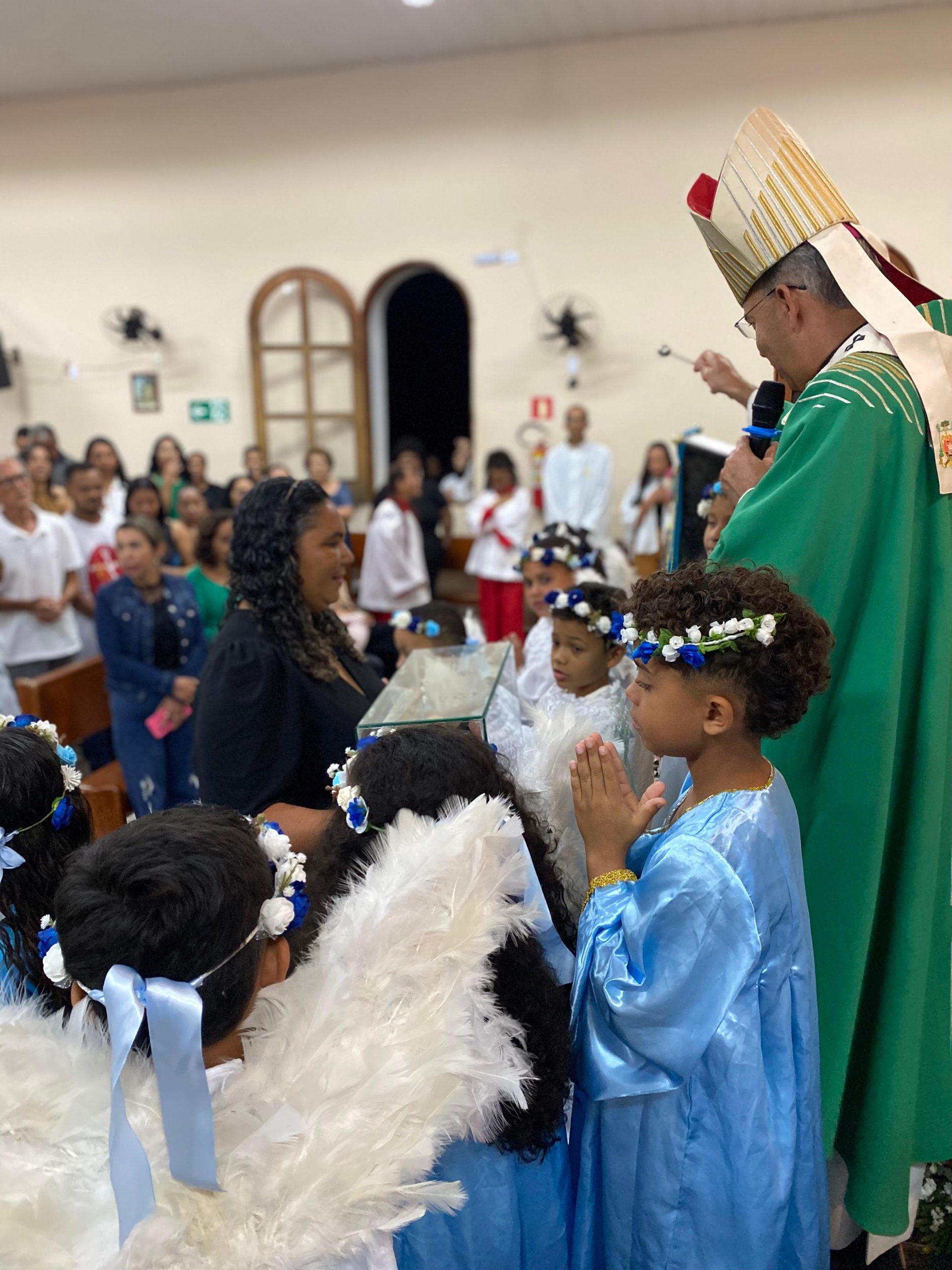 No final da celebração, um momento de grande alegria e devoção foi protagonizado pelas crianças da comunidade, que, juntamente com dom José Carlos, realizaram a coroação de Nossa Senhora da Conceição, encerrando a festa da padroeira com bênçãos e muita fé.