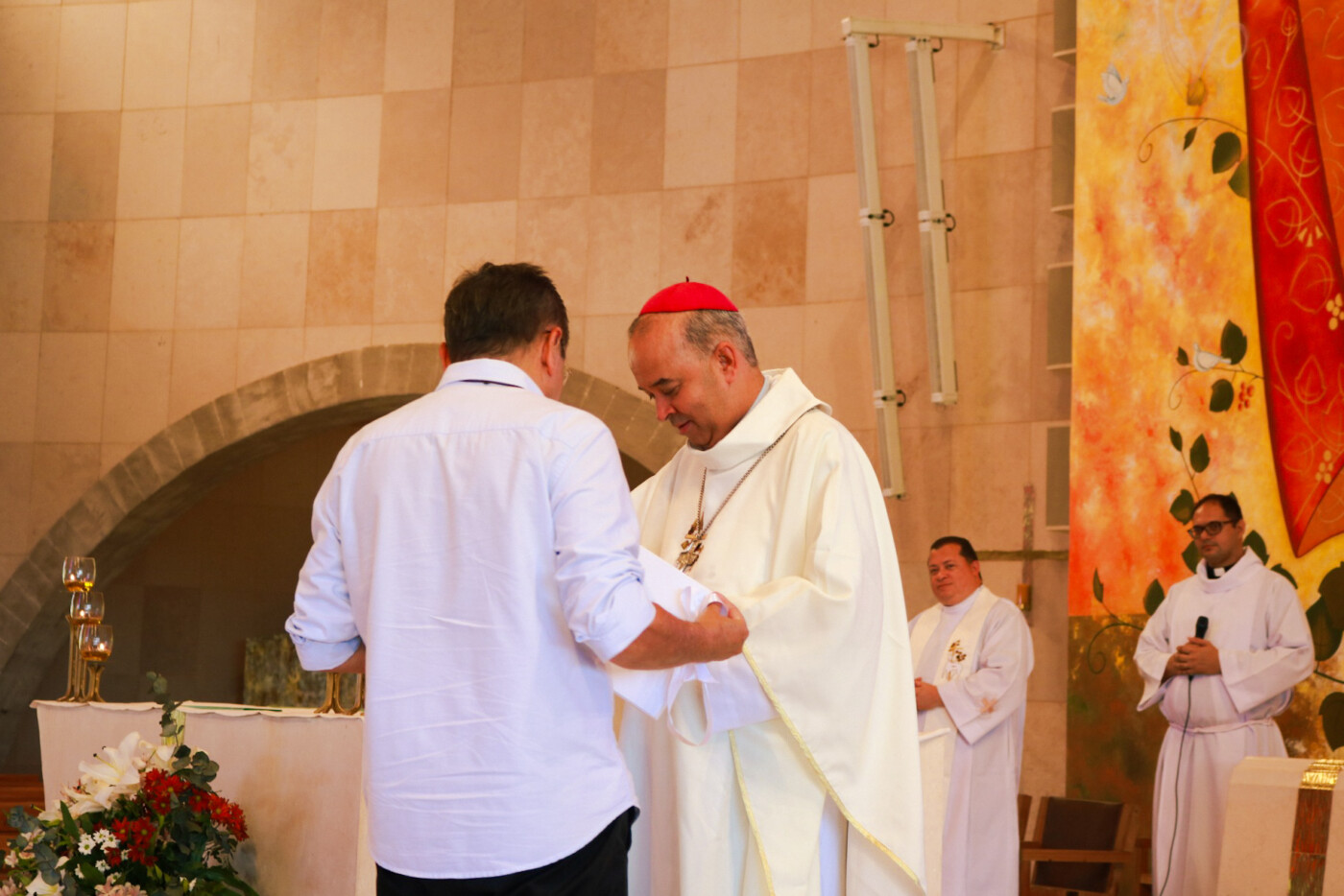 Ao meio-dia, Dom José Carlos presidiu a Missa na Igreja do Ressuscitado que passou pela Cruz. Após a celebração, ele almoçou com Moysés e missionários que servem ao Governo Geral da Comunidade.