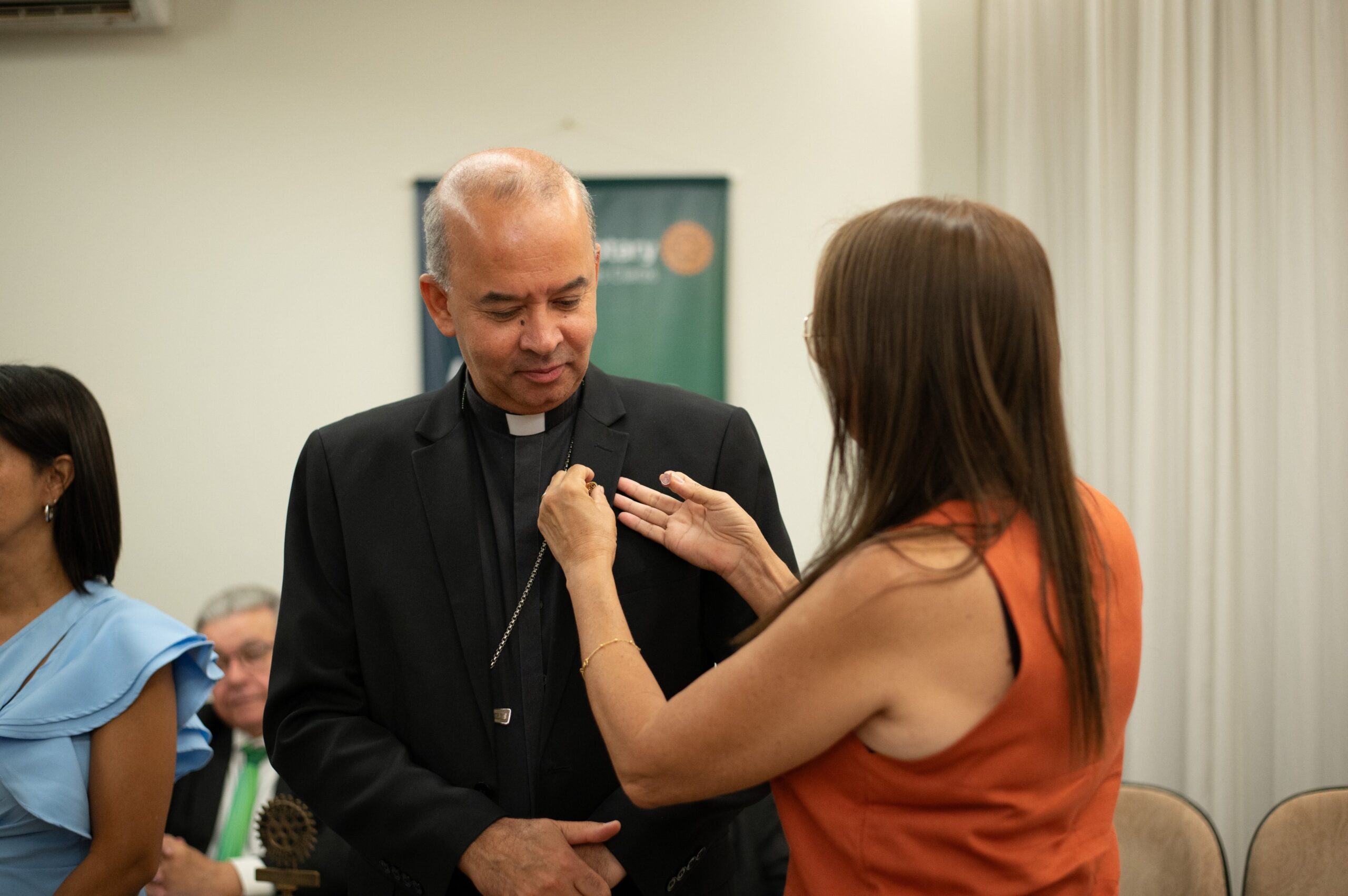 A indicação do Arcebispo partiu da rotariana e leiga atuante na Arquidiocese, Neli Pimenta, que também foi sua madrinha de posse. “Ele é uma pessoa que gosta de gente, que gosta de servir. Sabemos que ele vai abrilhantar nosso clube e nos ajudar nas ações sociais com seu olhar voltado para o próximo”, comentou Neli. Durante o rito, ela realizou a afixação do distintivo (o “pin” rotário). Juntamente com o Arcebispo, também tomou posse como sócia a senhora Sílvia Neves de Souza, apadrinhada por Marcelo Lacerda.