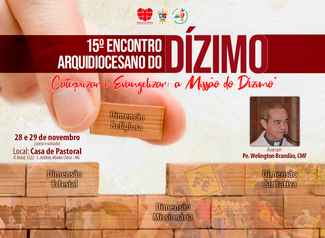 A Arquidiocese de Montes Claros convida todos os agentes da Pastoral do Dízimo para participarem do 15º Encontro Arquidiocesano do Dízimo, que acontecerá nos dias 28 e 29 de novembro de 2025, na Casa de Pastoral, em Montes Claros. Com o tema “Evangelizar e Catequizar: a missão do Dízimo”, o encontro tem como objetivo fortalecer a espiritualidade e o compromisso pastoral dos agentes que atuam na evangelização por meio do dízimo.