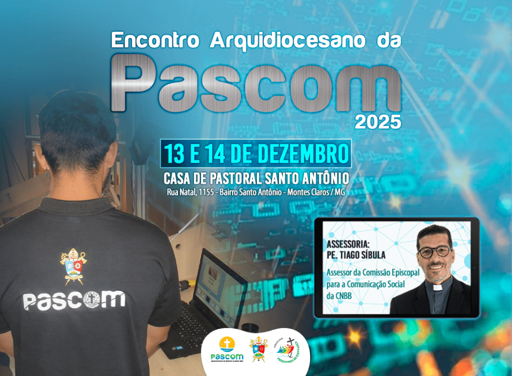 A Arquidiocese de Montes Claros realizará, nos dias 13 e 14 de dezembro, o Encontro Arquidiocesano da Pastoral da Comunicação (Pascom) 2025, um momento destinado à formação, integração e fortalecimento da identidade comunicacional da Igreja. O encontro acontecerá na Casa de Pastoral Santo Antônio (Rua Natal, nº 1155 – Bairro Santo Antônio, Montes Claros – MG).