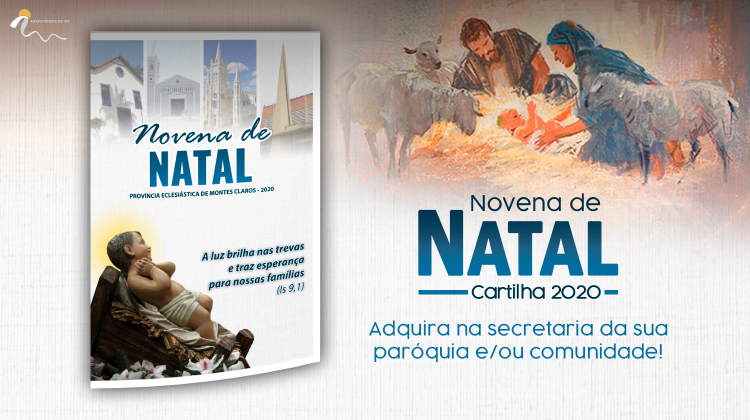 A Arquidiocese de Montes Claros disponibilizou para aquisição as Cartilhas da Novena do Natal de 2020. Já é possível adquiri-las nas paróquias e/ou comunidades e organizar entre as comunidades, bairros, grupos e famílias os encontros.