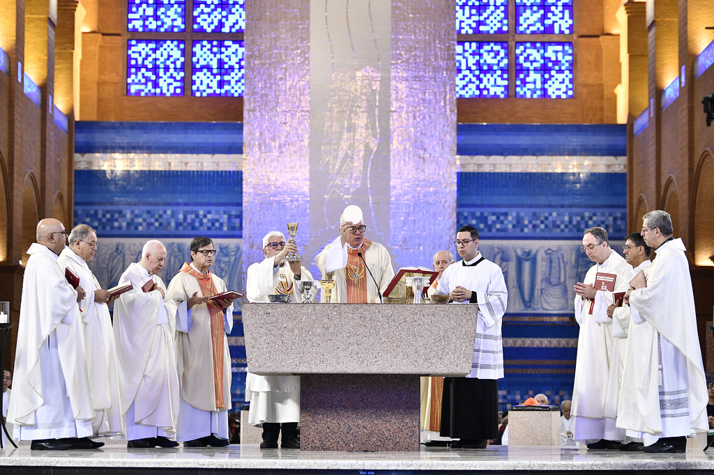 A Missa com Laudes da sexta-feira, 12 de abril, no Santuário Nacional de Nossa Senhora Aparecida, durante a 61ª Assembleia Geral da Conferência Nacional dos Bispos do Brasil (CNBB), fez memória dos bispos falecidos desde a última assembleia geral de 2023. A celebração foi presidida pelo arcebispo de Londrina (PR), dom Geremias Steinmetz, e concelebrada pelo arcebispo de Mariana (MG), dom Airton José dos Santos, e o bispo de Duque de Caxias (RJ), dom Tarcísio Nascentes dos Santos.