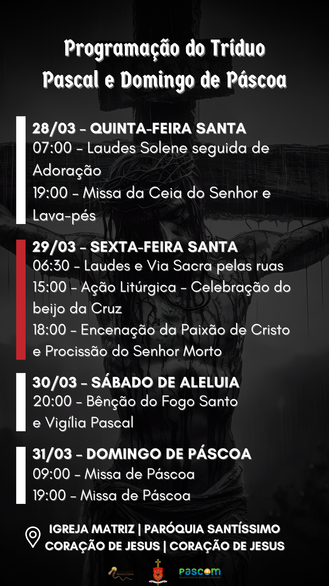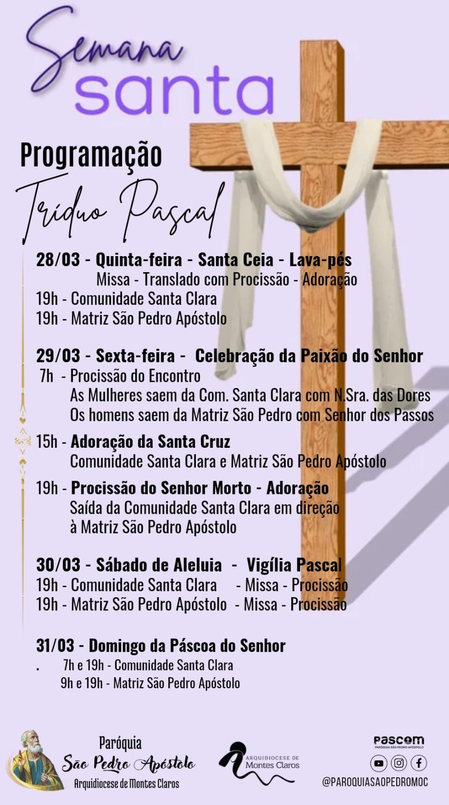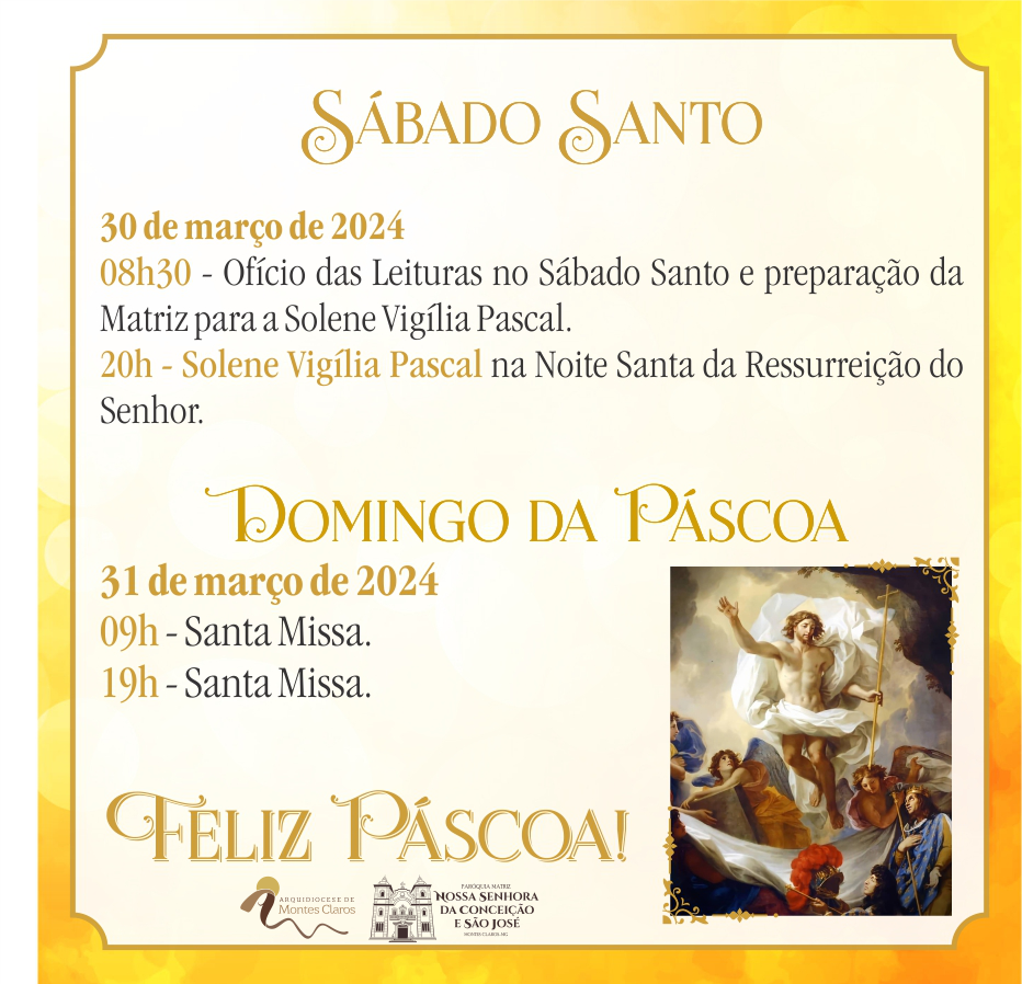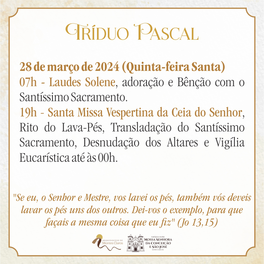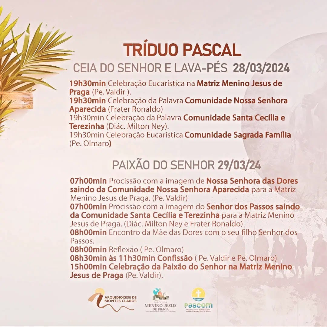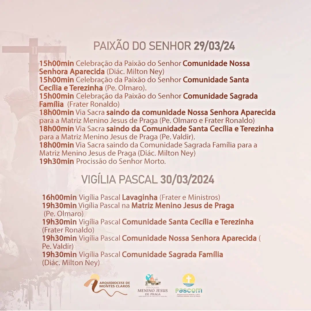 Confira a programação do Tríduo Pascal na Capela da Santa Casa e pelas paróquias da Arquidiocese de Montes Claros :