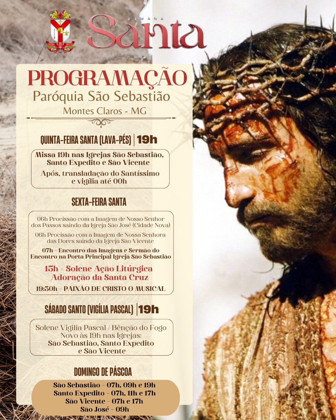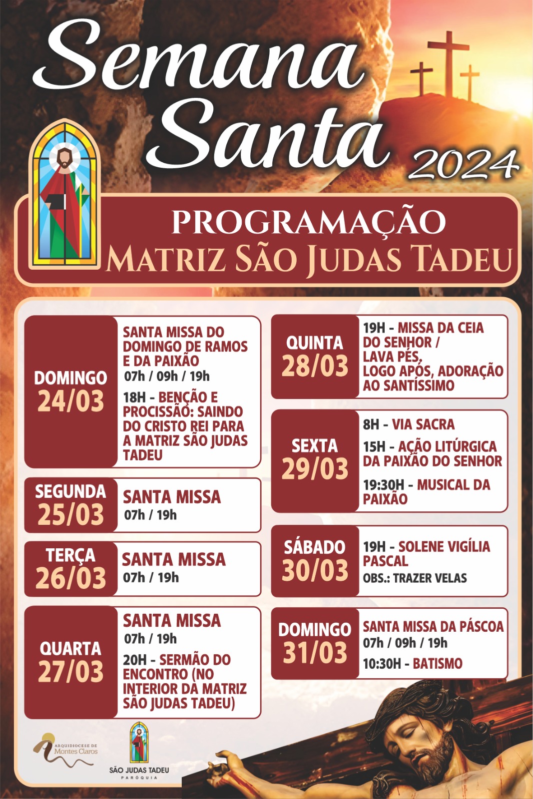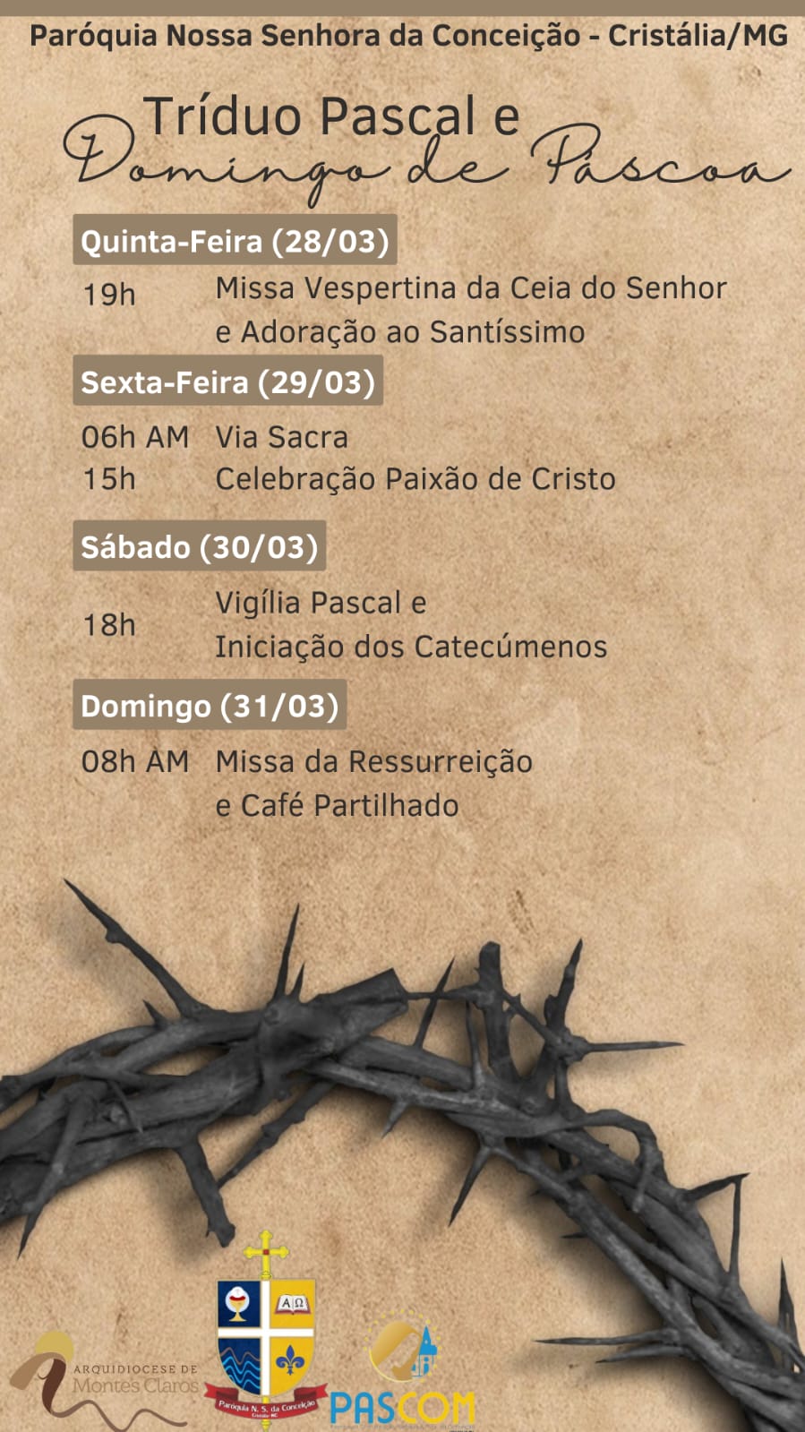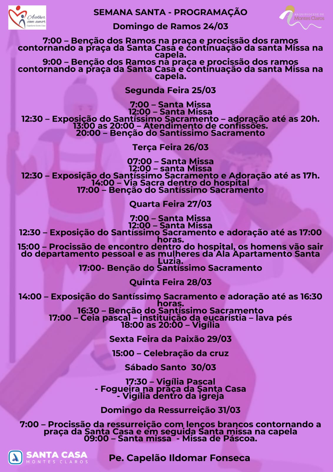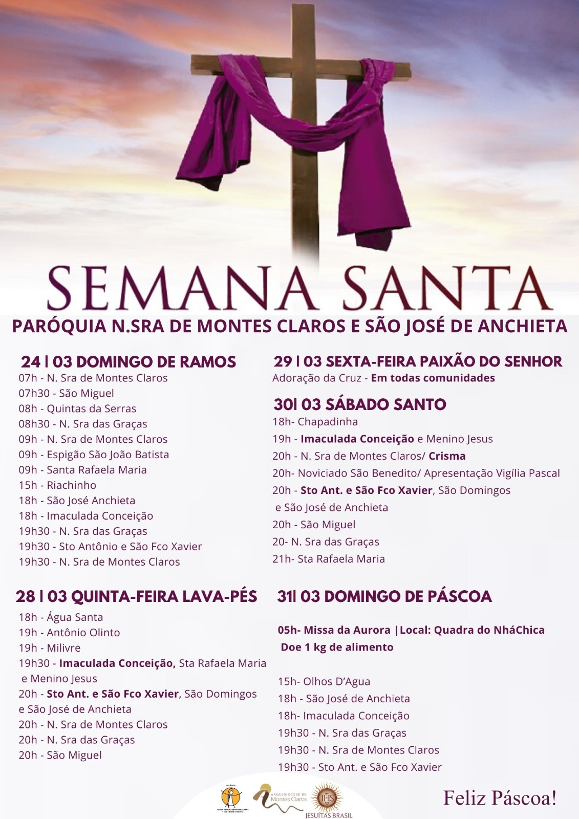 Confira a programação do Tríduo Pascal na Capela da Santa Casa e pelas paróquias da Arquidiocese de Montes Claros :