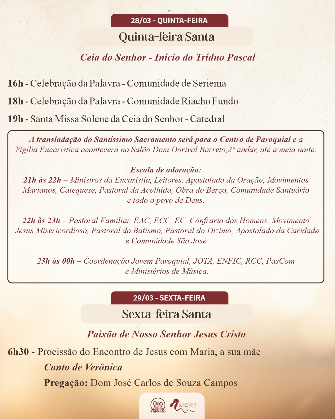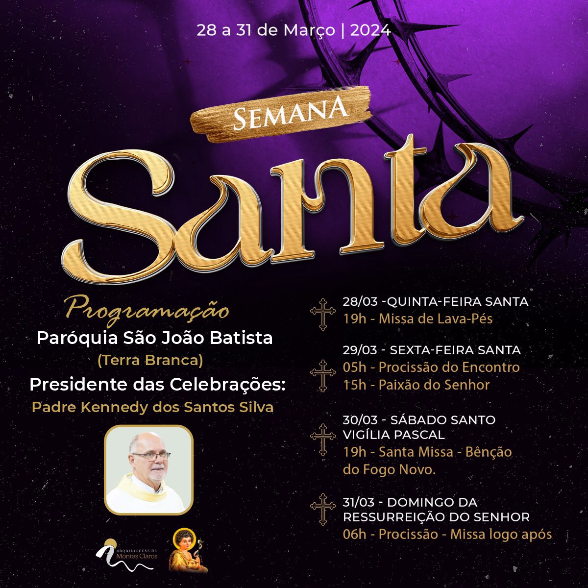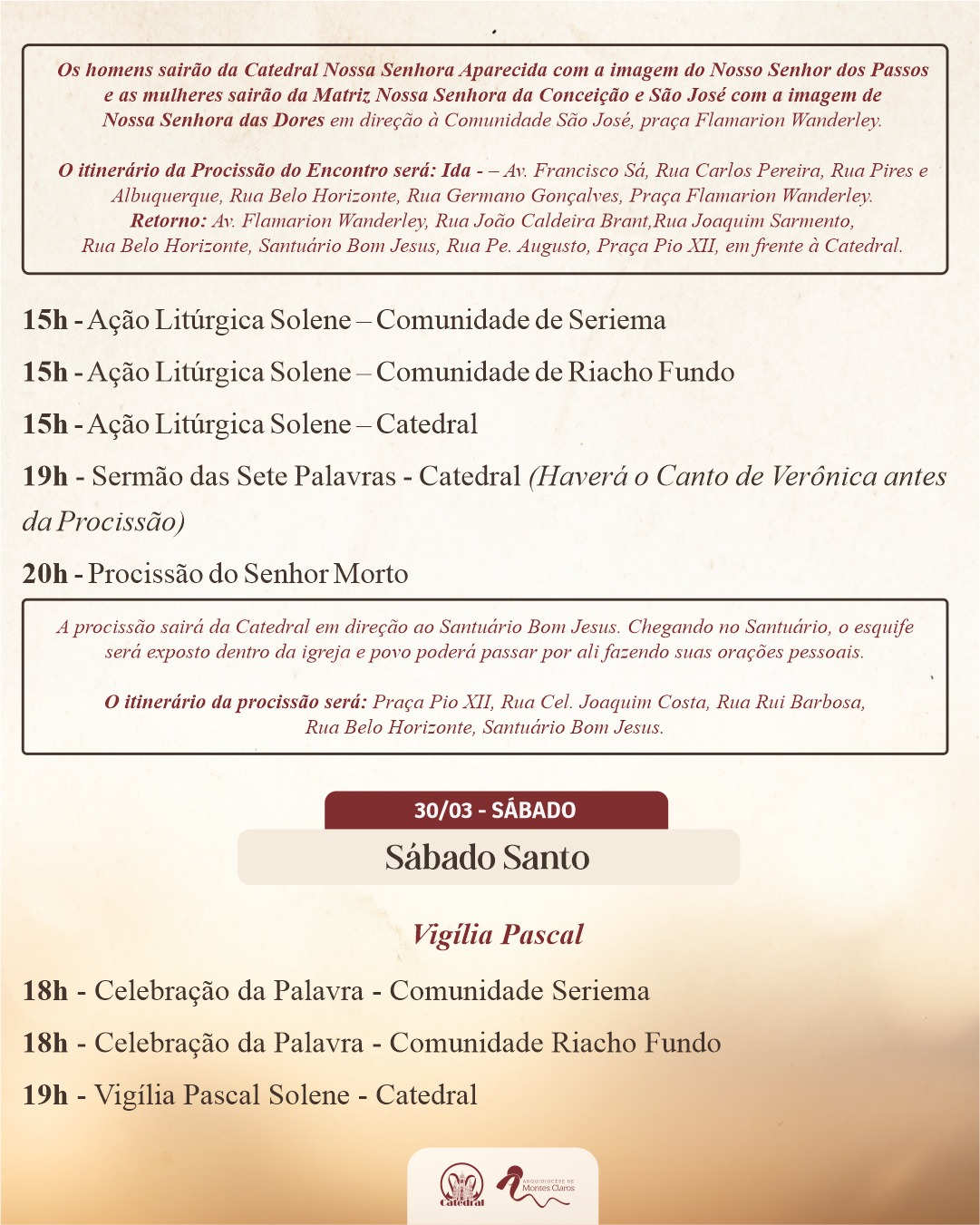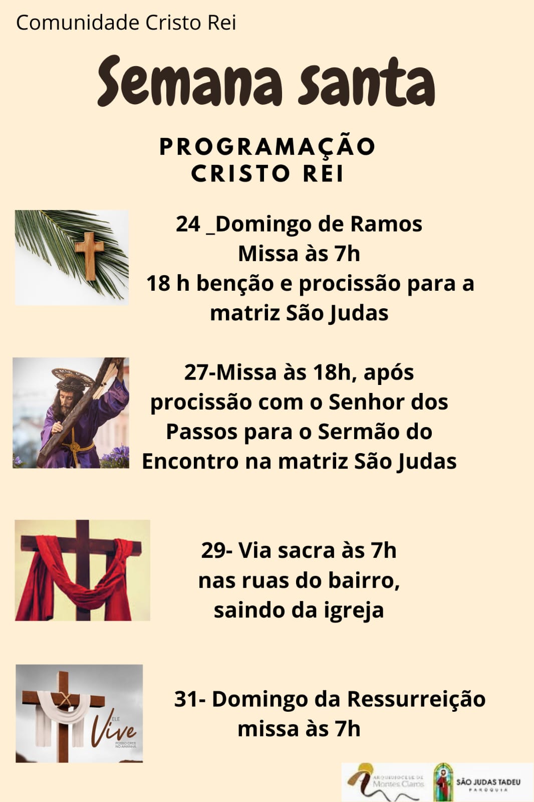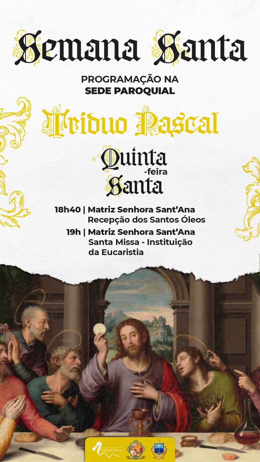 Confira a programação do Tríduo Pascal na Capela da Santa Casa e pelas paróquias da Arquidiocese de Montes Claros :