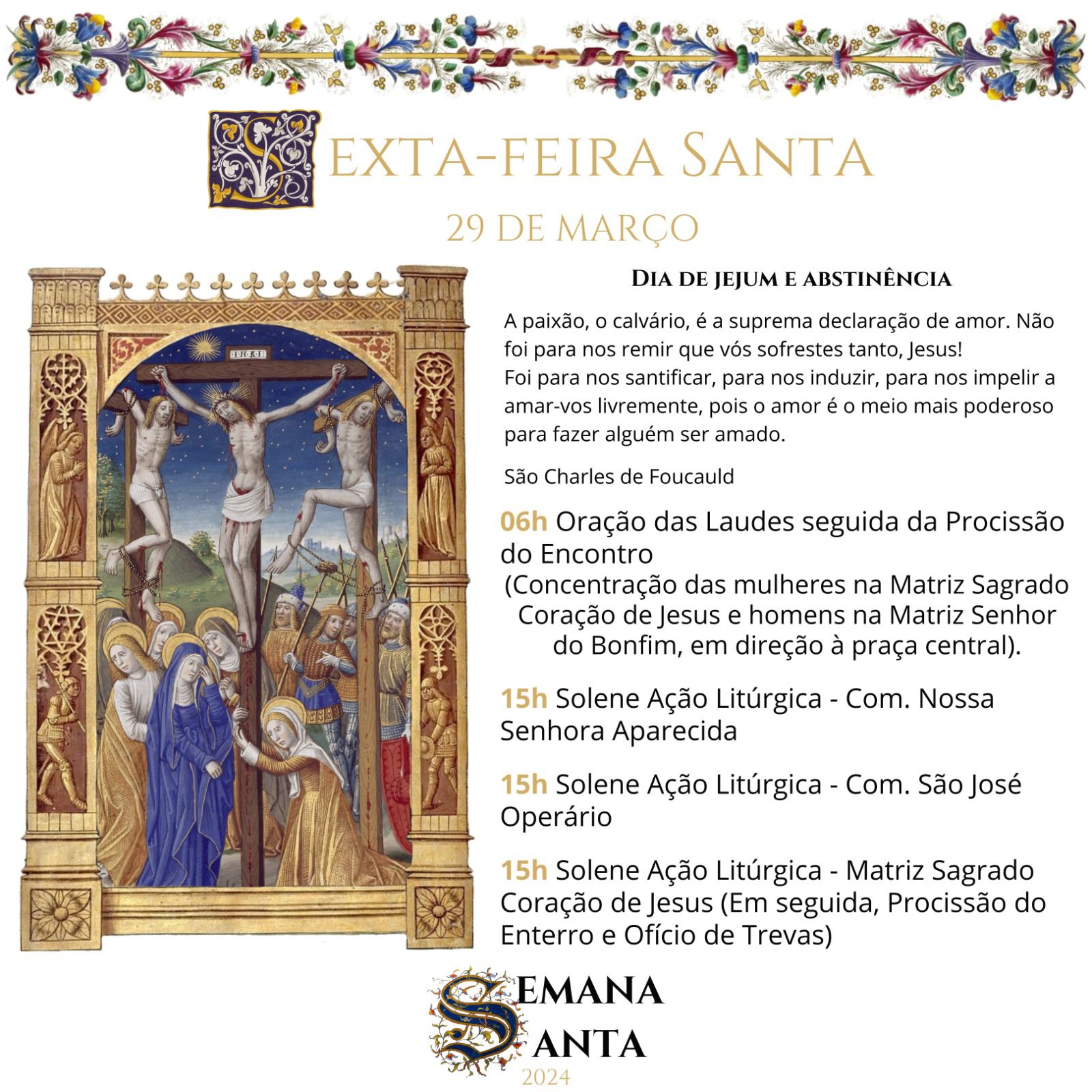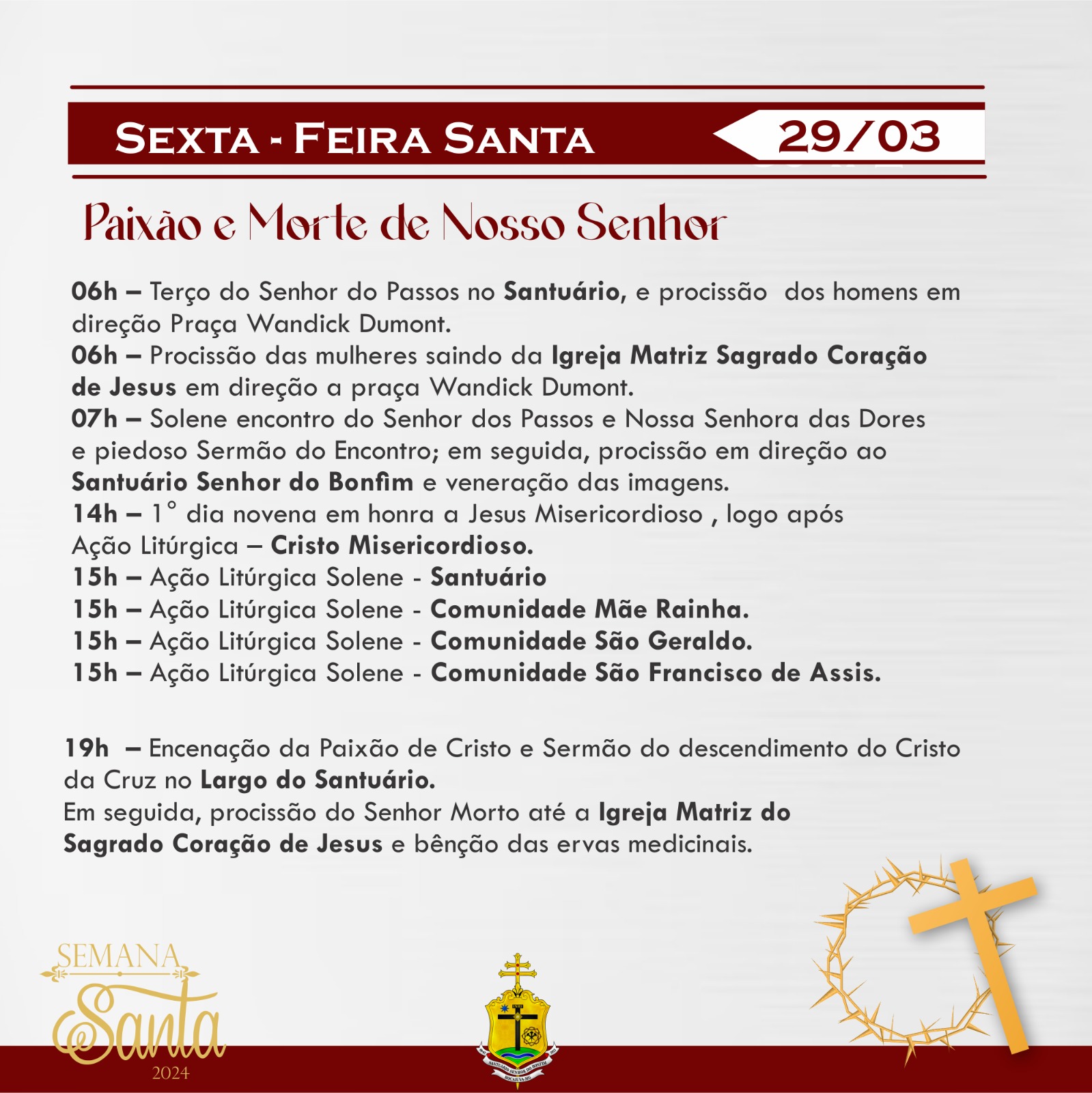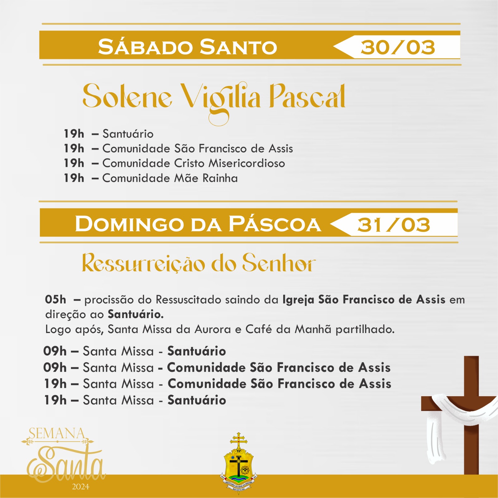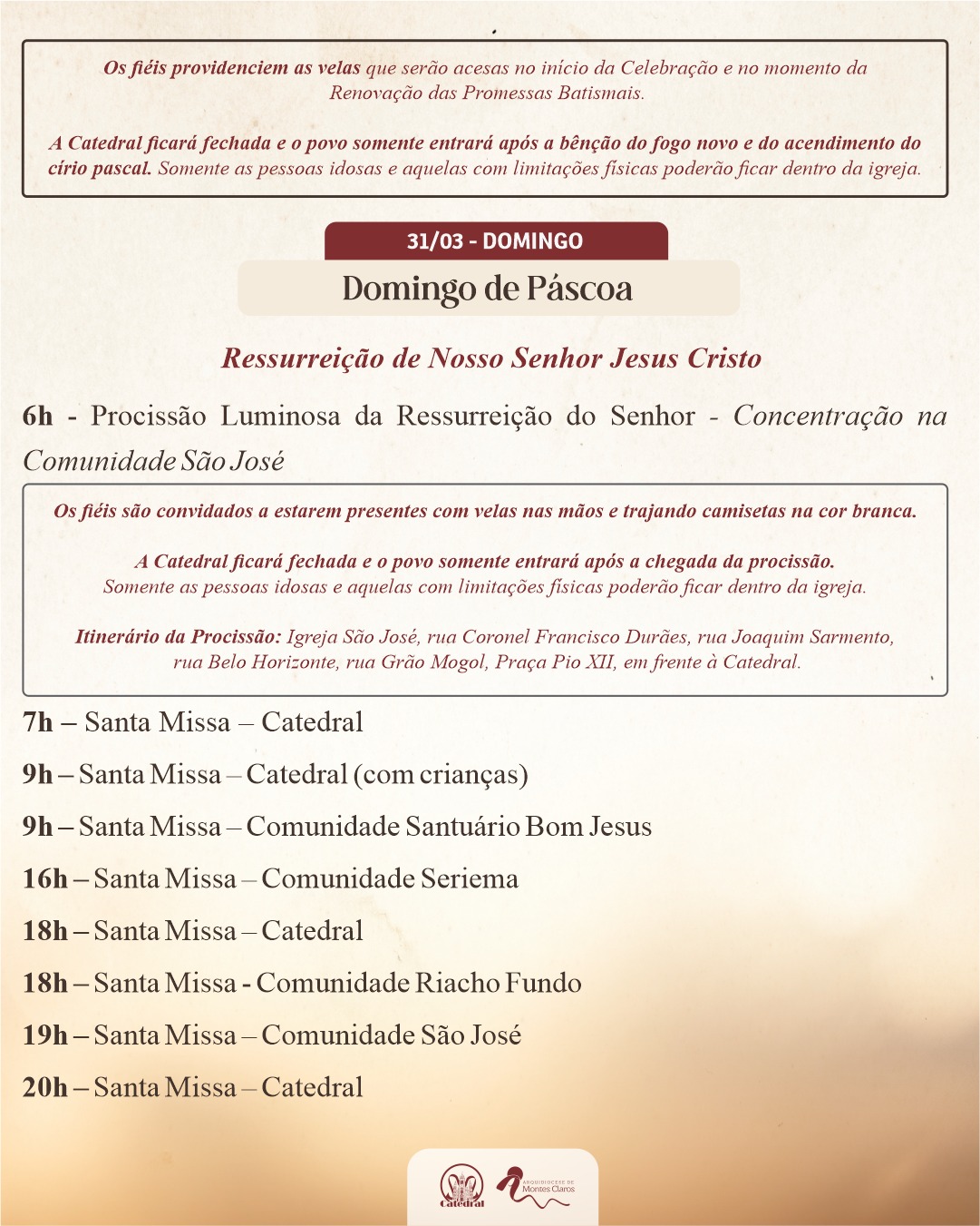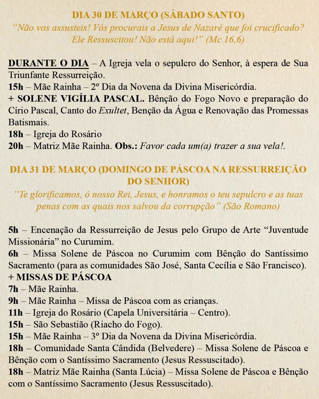 Confira a programação do Tríduo Pascal na Capela da Santa Casa e pelas paróquias da Arquidiocese de Montes Claros :