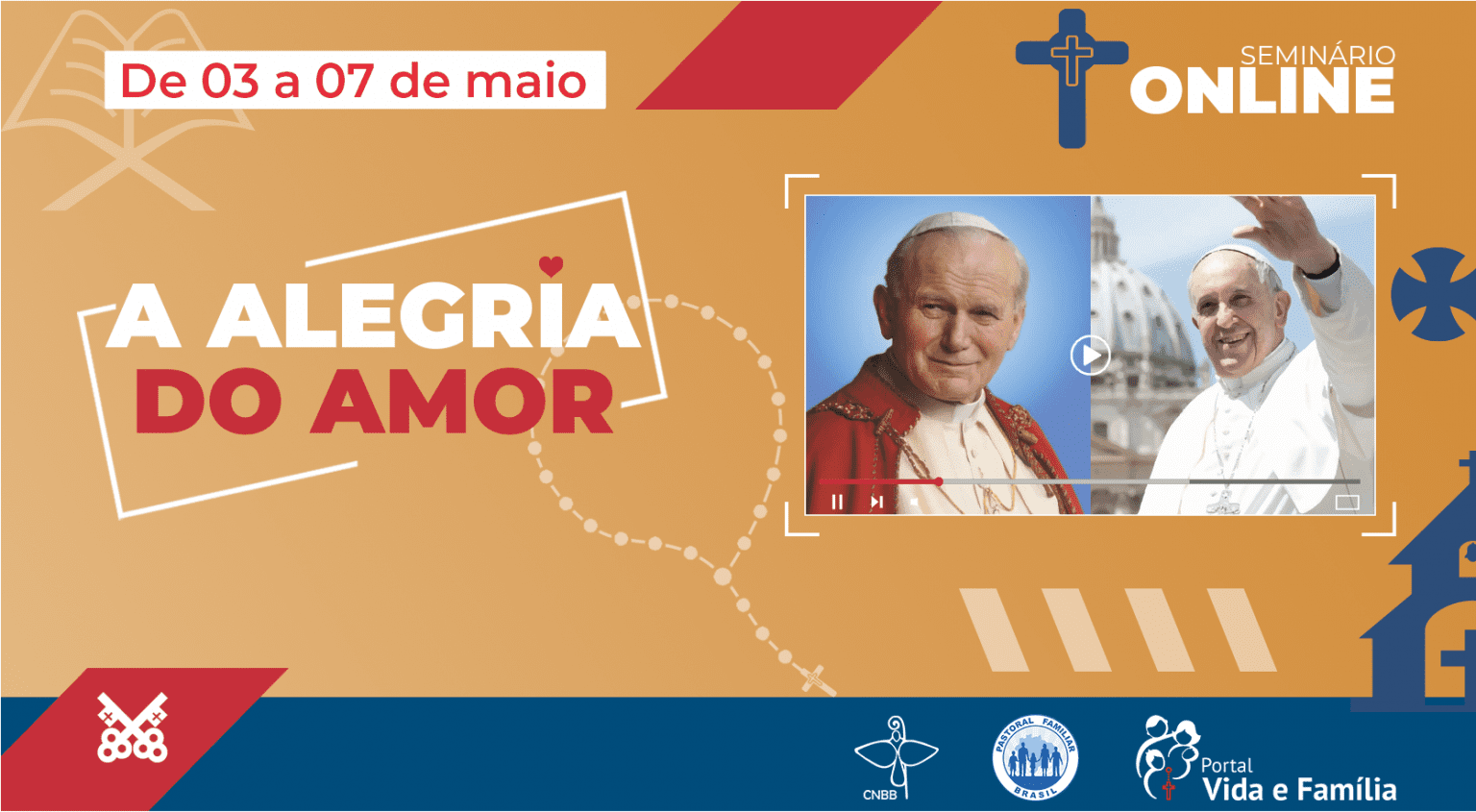 Para celebrar os 40 anos da Familiaris Consortio e os cinco anos da Amoris Laetitia, exortações apostólicas sobre a família dos Papas João Paulo II e Francisco, respectivamente, a Comissão Episcopal Pastoral para a Vida e a Família da Conferência Nacional dos Bispos do Brasil (CNBB), por meio da Comissão Nacional da Pastoral Familiar (CNPF), promove o Seminário Alegria do Amor, de 3 a 7 de maio, de forma on-line, sempre às 20h.