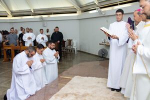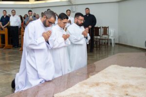 Os seminaristas, Halisson Douglas Caldeira, Rafael Augusto Ferreira e Vitor Thaun dos Santos, foram admitidos às Ordens Sacras na última terça-feira, 19, Solenidade de São José. A missa com o rito de admissão foi celebrada no Seminário Maior Imaculado Coração de Maria, em Montes Claros.